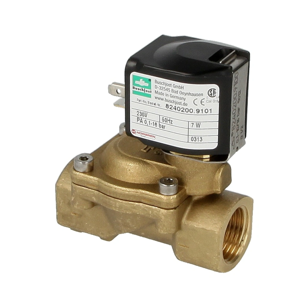 Kompaktes Magnetventil mit Schließdämpfung und NBR-Dichtung für Luft, Wasser und neutrale Gase. Das Ventil wird indirekt angesteuert und benötigt nur einen geringen Differenzdruck zum Öffnen. Es bietet eine große Durchflussmenge, ist druckstabil und hat eine geringere Leistungsaufnahme als direktgesteuerte Magnetventile.