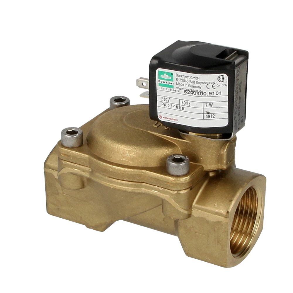 Kompaktes Magnetventil mit Schließdämpfung und NBR-Dichtung für Luft, Wasser und neutrale Gase. Das Ventil wird indirekt angesteuert und benötigt nur einen geringen Differenzdruck zum Öffnen. Es bietet eine große Durchflussmenge, ist druckstabil und hat eine geringere Leistungsaufnahme als direktgesteuerte Magnetventile.