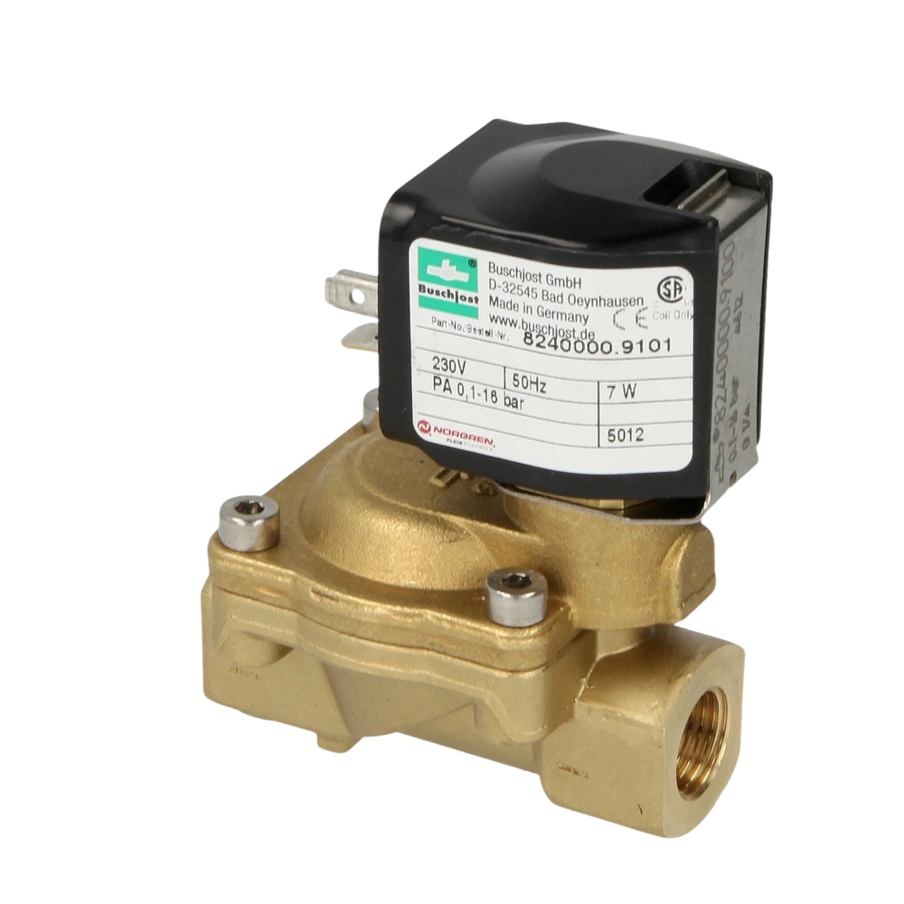Kompaktes Magnetventil mit Schließdämpfung und NBR-Dichtung für Luft, Wasser und neutrale Gase. Das Ventil wird indirekt angesteuert und benötigt nur einen geringen Differenzdruck zum Öffnen. Es bietet eine große Durchflussmenge, ist druckstabil und hat eine geringere Leistungsaufnahme als direktgesteuerte Magnetventile.