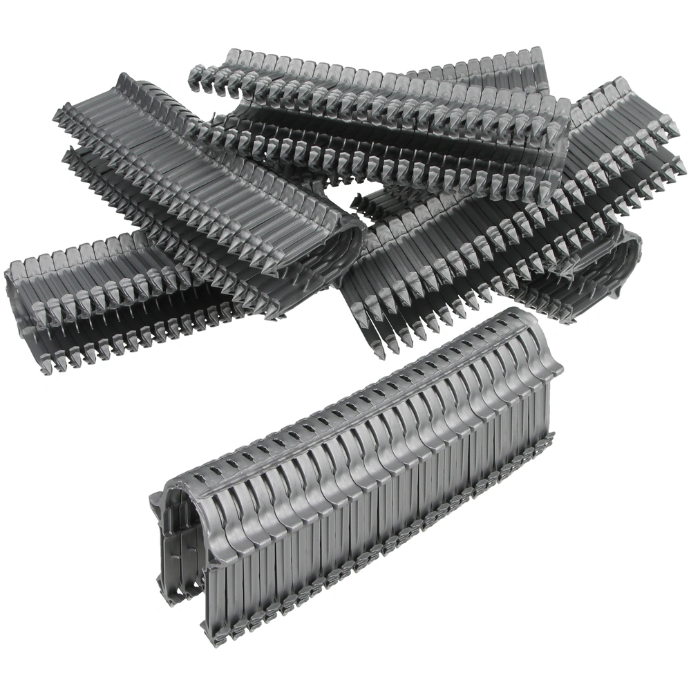 Die Tackernadeln aus hochschlagfestem Compound-Material eignen sich für alle Rohrdurchmesser von 14 bis 20 mm.