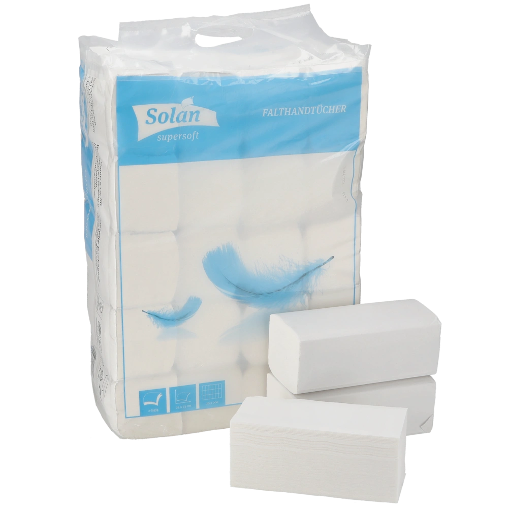 Die 2-lagigen Papierhandtücher der Serie M werden mit Z-Falzung in der Farbe hochweiß geliefert. Ein Paket enthält 200 Tücher.