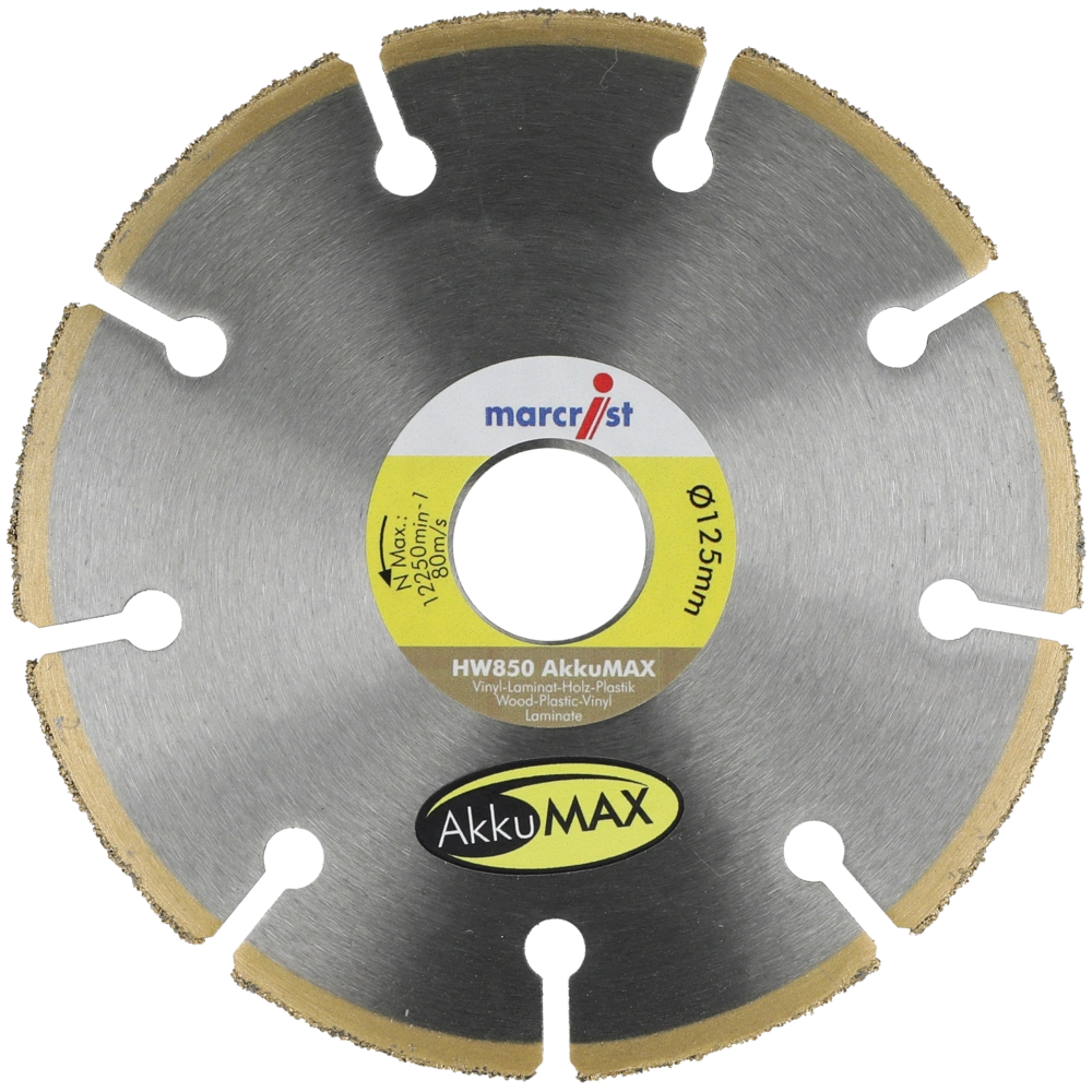 AkkuMAX Diamanttrennscheibe für Dämmstoffe, Holz, Plastik, Laminat und Doppelstegplatten ist ausgestattet mit einer ultra-dünnen Schnittkante. Sie ist perfekt geeignet für den Innenausbau, liefert präzise Schnitte und ist speziell für Akku-Geräte ausgelegt. Die Scheibe ist sehr langlebig und schneidet extrem schnell.