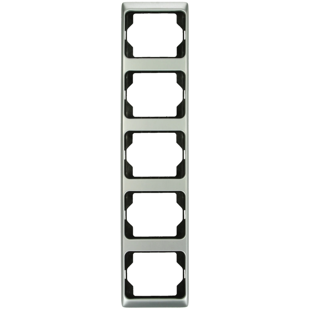 5-fach Abdeckrahmen zur senkrechten Montage. Der Rahmen kann für Kanalinstallationen mit 80 mm Kanalabdeckung verwendet werden.