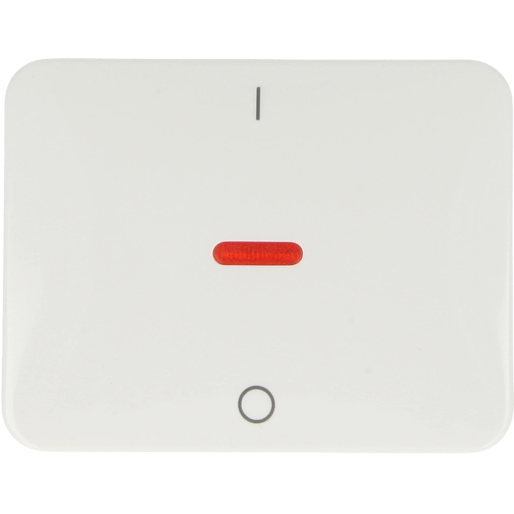 Beleuchtbare Einzelwippe mit Aufdruck "0" und "I" und kleiner roter Kalotte als Abdeckung für 2- und 3-polige Unterputz-Ausschalter sowie 2-polige Kontroll-Ausschalter.