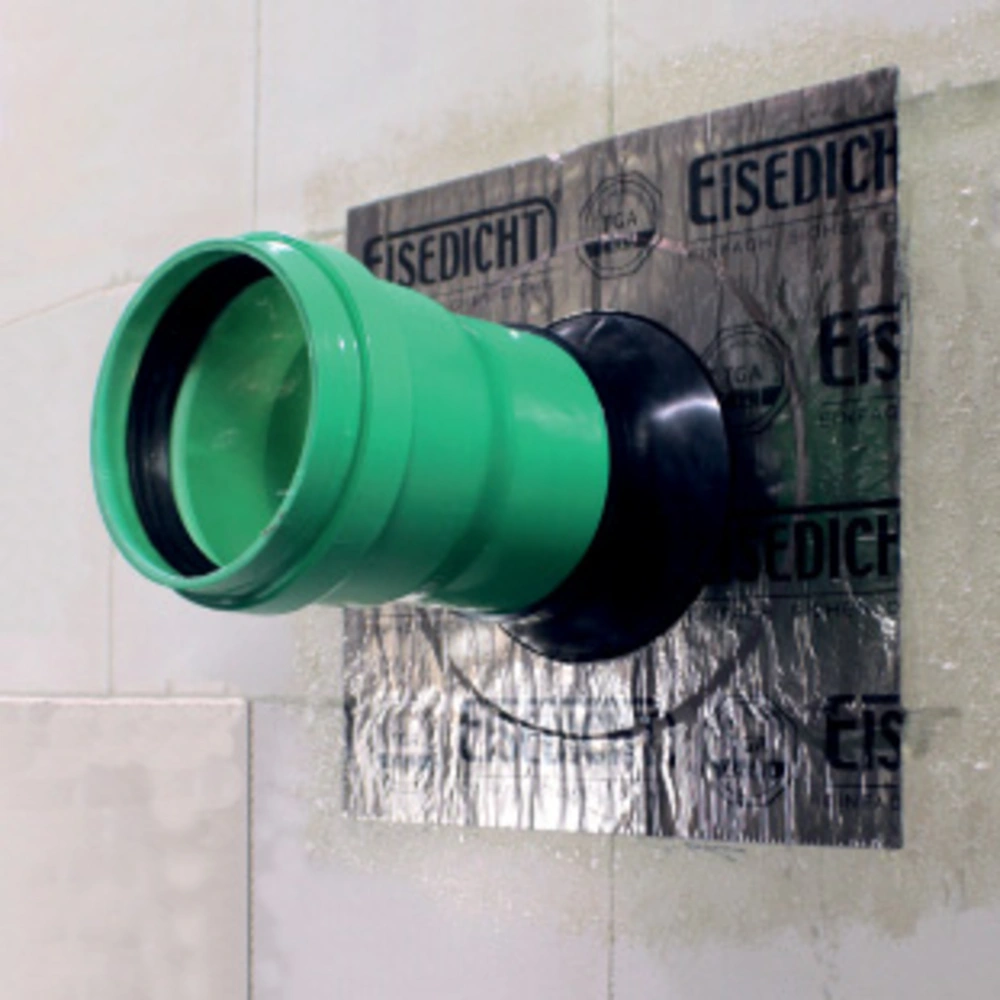 Alle ProduktinformationenKlebemanschette zum Abdichten von Rohren zum Mauerwerk, Bodenplatten oder Holzfaserplatten. Eine elastische Tülle aus EPDM-Kautschuk und die große Klebefläche in Verbindung mit Haftprimer dichten auch auf schwierigen Untergründen dauerhaft ab. Die Dichtmanschette ist für den Kellersockelbereich gegen aufsteigende Bodenfeuchte bis 0,20 m Wassersäule einsetzbar. Im Holzrahmenbau schließt sie luftdicht ab.