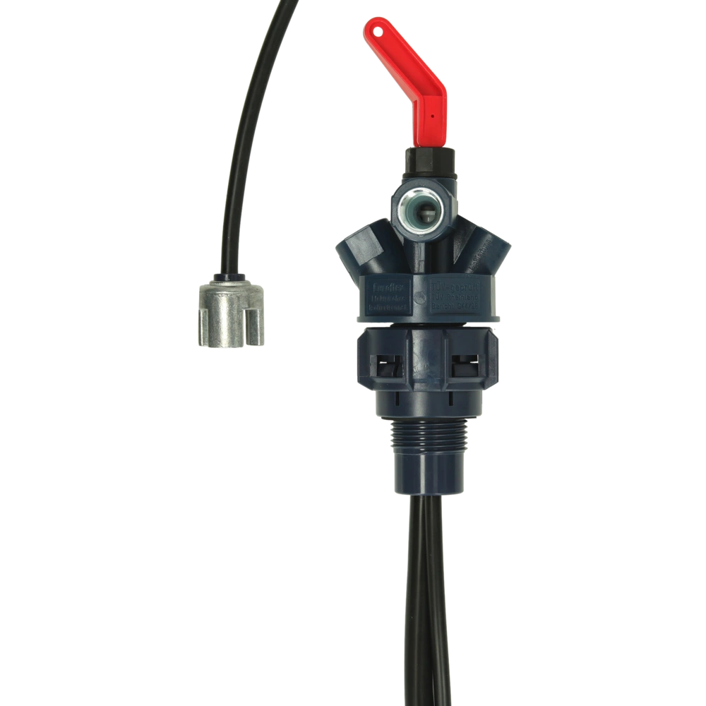 Der Anschluss der Saugleitung und des Rücklaufes erfolgt über G 3/8" Edelstahlgewindebuchsen. Anschlussverschraubungen sind nicht im Lieferumfang enthalten. Das integrierte Rückschlagventil mit elastischem Ventilsitz verhindert während der Brennerstillstandszeit ein Abreißen der Ölsäule in der Saugleitung. Das Schnellschlussventil verfügt über einen Kipphebel für die Fernabstellung im Notfall. Die Anschlussarmatur ist bis 1 bar druck- und vakuumdicht.