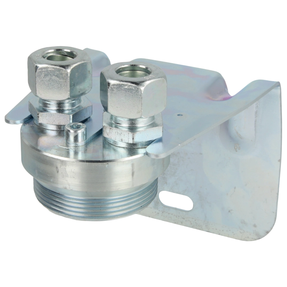 Zähleranschluss: AG 2 RH flachdichtend. Rohranschluss mit Rohrverschraubung 15 mm gerade bzw. mit einstellbarer Winkelverschraubung. Werkstoff: Stahl verzinkt, Montageplatte: 220 x 110 mm.