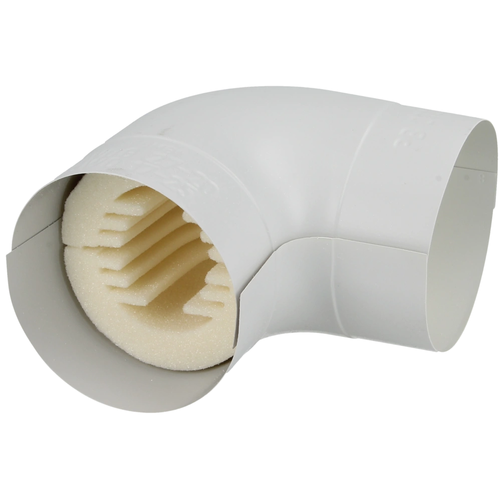 Der Isolierbogen aus Polyurethan ist mit einer PVC-Folie ummantelt und eignet sich für die fachmännische Isolierung von Rohrleitungen im Sichtbereich.