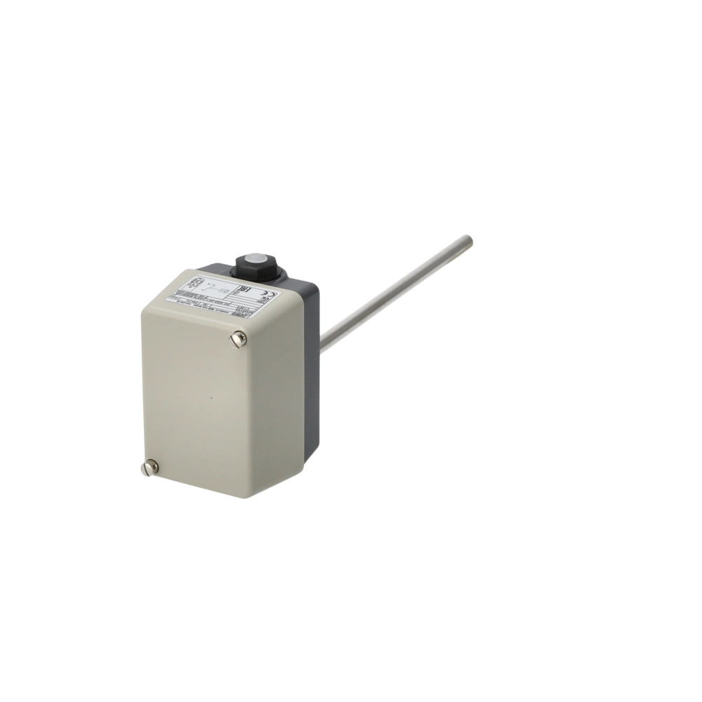 Aufbau-Thermostat mit Prozessanschluss zur Überwachung von thermischen Prozessen. Das Thermostat arbeitet nach dem Flüssigkeitsausdehnungsprinzip. Wird der eingestellte Grenzwert von der anstehenden Temperatur überschritten, öffnet bzw...