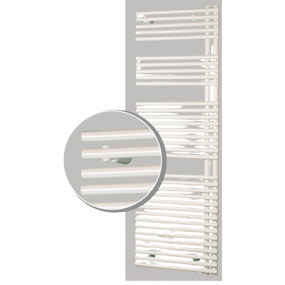 Bad-Heizkörper der Serie Apia aus pulverbeschichtetem Stahl mit Chrom-Effekt sorgen für wohlige Wärme und ein komfortables Raumklima. Das Design aus klaren Linien und sinnvoller Anordnung der Heizrohre wertet jedes Bad auf und bietet eine hohe Funktionalität. Die Leistungsangaben beziehen sich auf eine Vorlauftemperatur von 75, eine Rücklauftemperatur von 65 und eine Lufttemperatur von 20 °C. Für effektive Wärmeleistung benötigt der Heizkörper einen Bodenabstand von mindestens 150 mm.