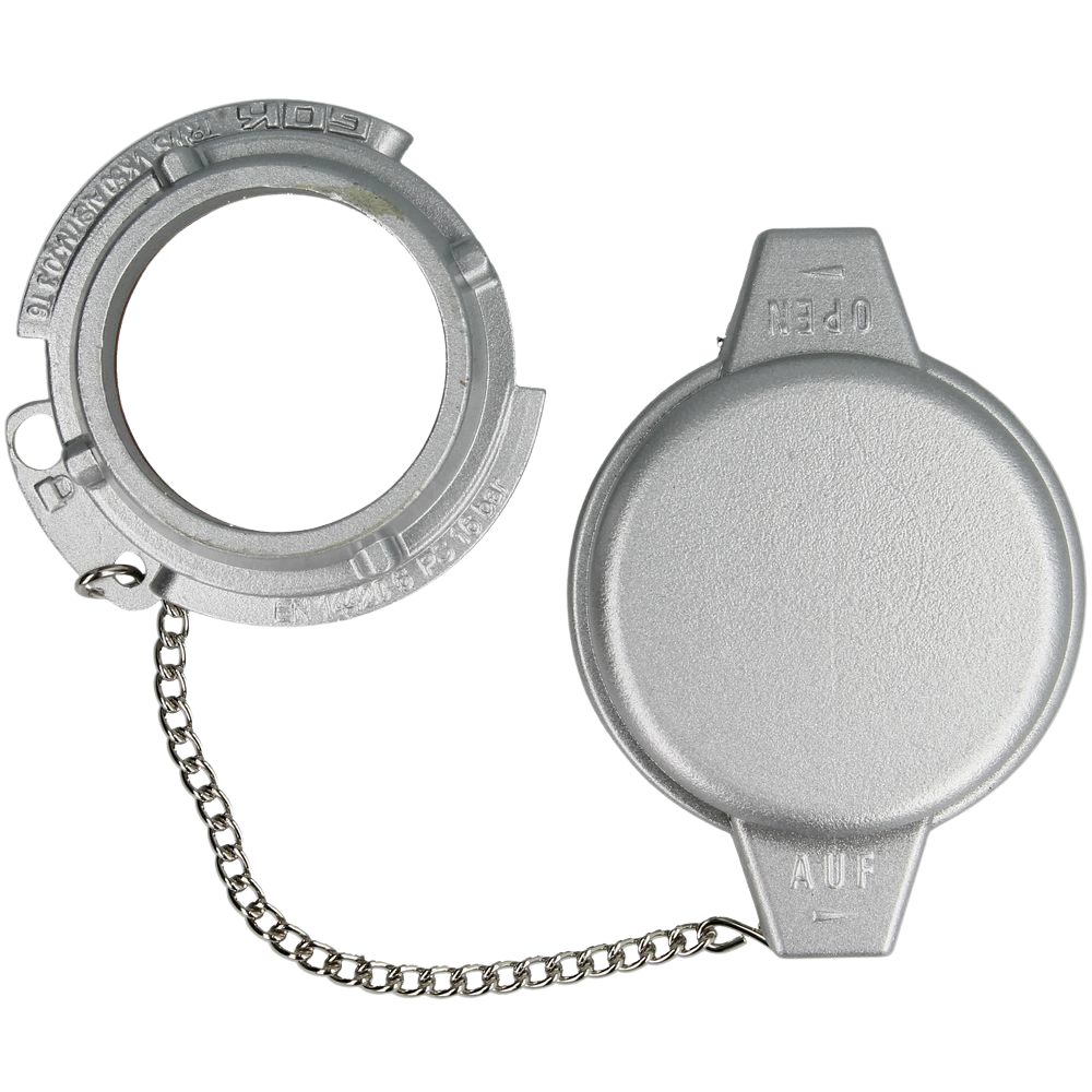 Füllrohrverschluss mit Kette und Dichtungen aus Polyurethan und HNBR.