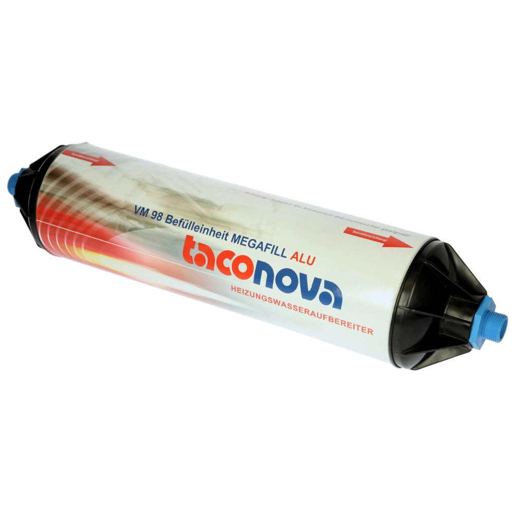 Die Megafill ist eine Einwegpatrone zur Heizungswasseraufbereitung zum Erst- oder Nachbefüllen und erfüllt vollständig die VDI 2035.
