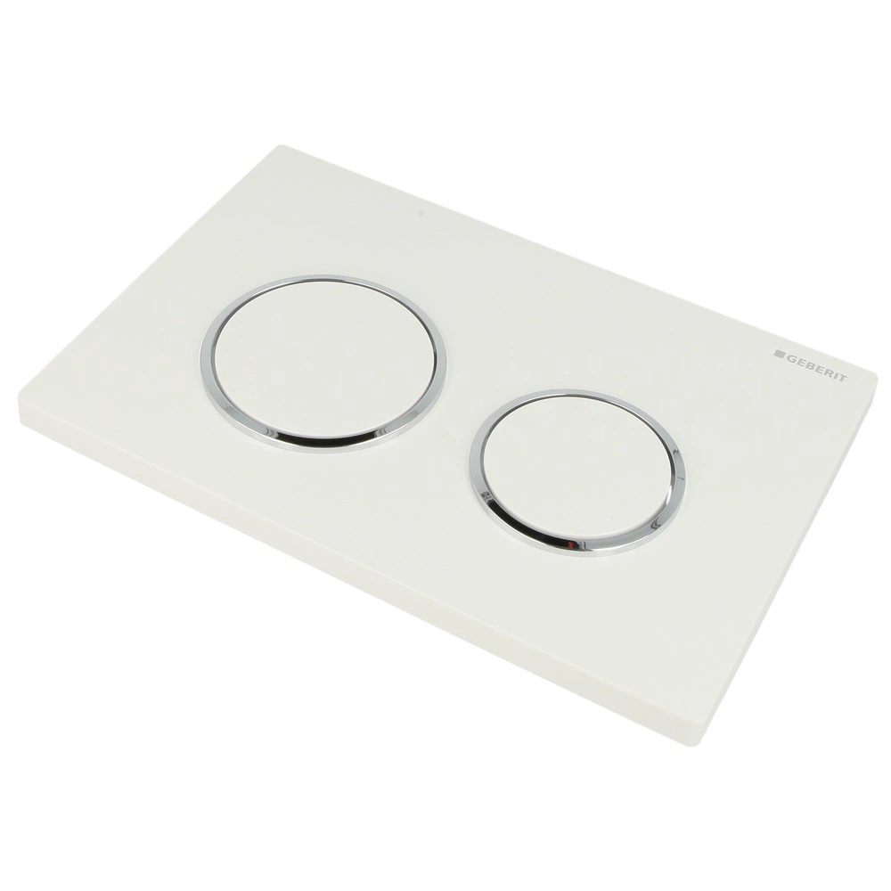 Betätigungsplatte Omega20 mit 2-Mengen-Spülung passend für die Kappa- und Omega-Unterputz-Spülkästen. Die Platte ist für die Betätigung von oben oder von vorne geeignet.