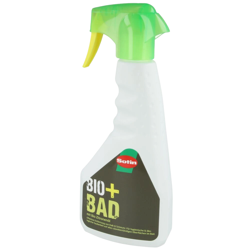 Bio-Badreiniger mit ätherischem Zitronen-Öl zur effektiven Entfernung von Kalk und Schmutz auf säurebeständigen Oberflächen.