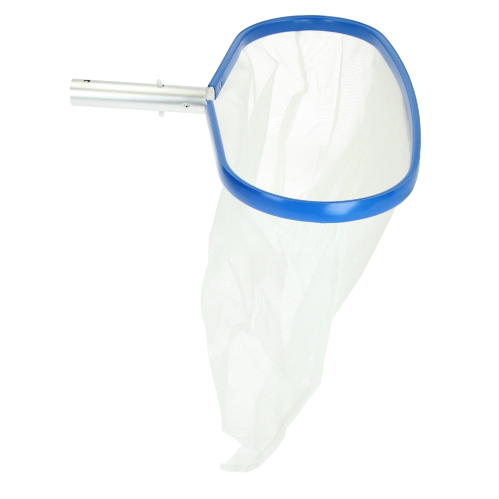 Bodenkescher mit stabilem Rahmen aus Kunststoff und Aluminium-Griff für die Pool- und Schwimmbadreinigung. Der Kescher besitzt einen Clip-Anschluss für eine Teleskopstange.