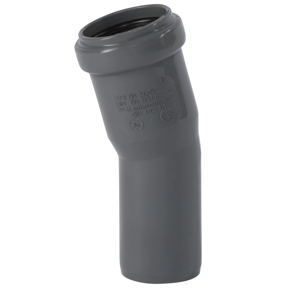 HTsafe-Rohrbogen aus schwer entflammbarem PP-H nach DIN 4102 (B1) mit einseitiger Steckmuffe und 3-fach-Dichtlippe. Eignet für die Abwasserleitung innerhalb von Gebäuden nach DIN EN 1451. Das Rohr ist für heiße, kalte und aggressive Abwässer sowie für Zentralstaubsaugeranlagen geeignet.