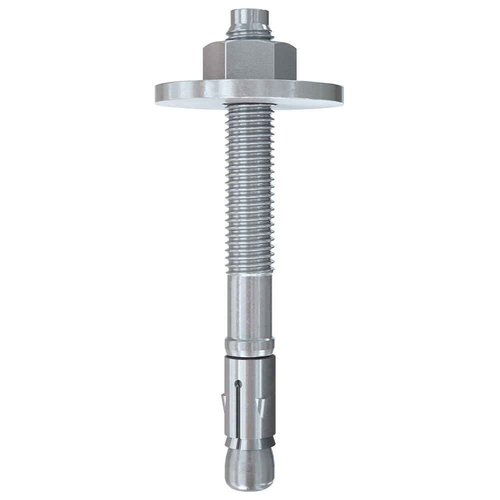 Galvanisch verzinkter Bolzenanker mit vormontierter Unterlegscheibe für alle Standardbefestigungen in gerissenem und ungerissenem Beton. Zwei Verankerungstiefen sorgen dabei für eine flexible Montage. Im Falle einer Fehlbohrung kann der Anker ausgeschraubt werden, sodass die Betonoberfläche eben bleibt. Der Anker kann wiederverwendet werden, wenn ein neues Bohrloch mit einem Mindestabstand der doppelten Tiefe erstellt wird oder in geringerem Abstand, wenn die Fehlbohrung mit hochfestem Mörtel verfüllt wird.