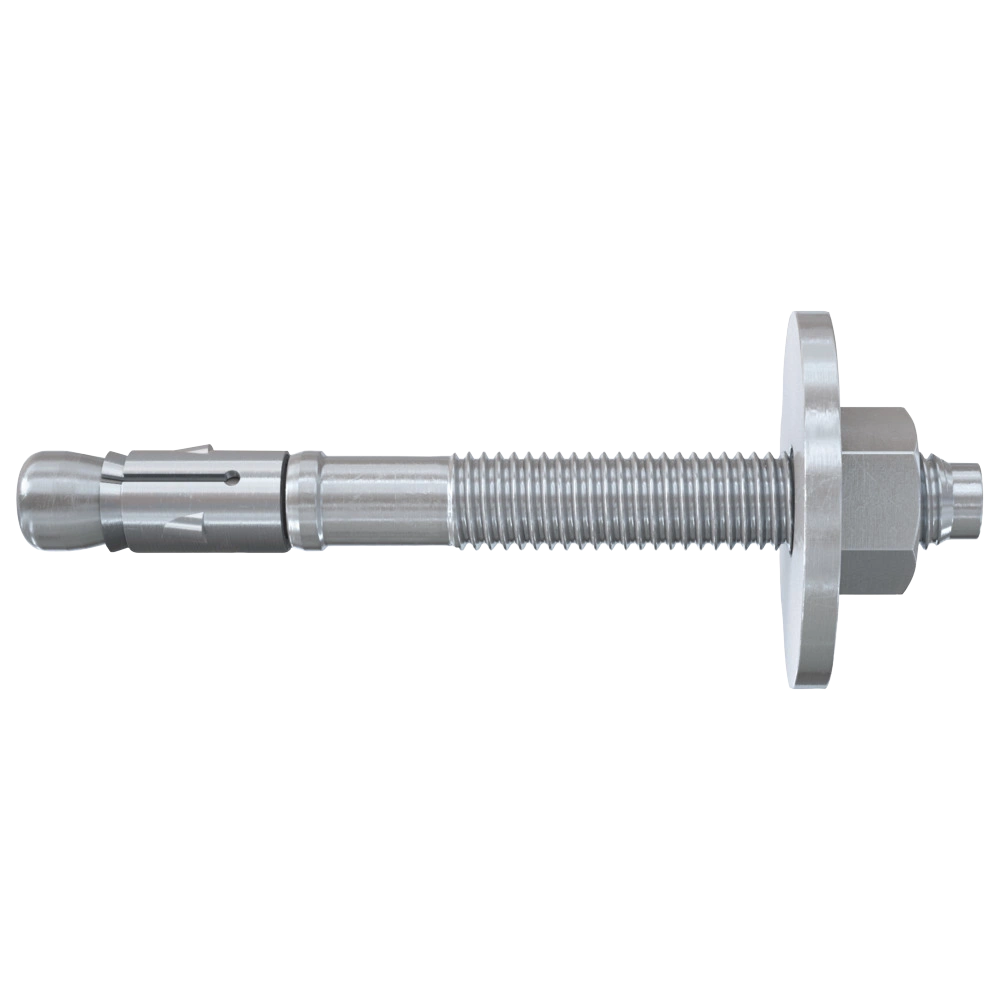 Galvanisch verzinkter Bolzenanker mit vormontierter Unterlegscheibe für alle Standardbefestigungen in gerissenem und ungerissenem Beton. Zwei Verankerungstiefen sorgen dabei für eine flexible Montage. Im Falle einer Fehlbohrung kann der Anker ausgeschraubt werden, sodass die Betonoberfläche eben bleibt. Der Anker kann wiederverwendet werden, wenn ein neues Bohrloch mit einem Mindestabstand der doppelten Tiefe erstellt wird oder in geringerem Abstand, wenn die Fehlbohrung mit hochfestem Mörtel verfüllt wird.