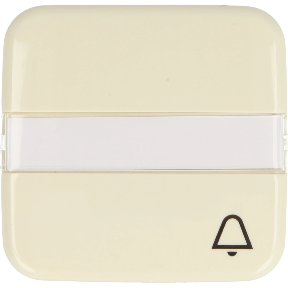 Einzelwippe mit Beschriftungsfeld und kleinem Klingel-Symbol als Abdeckung für Taster zur Unterputz-Installation.