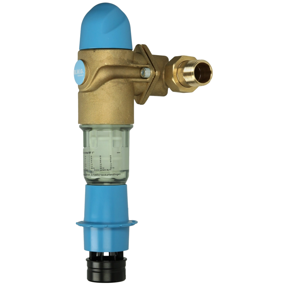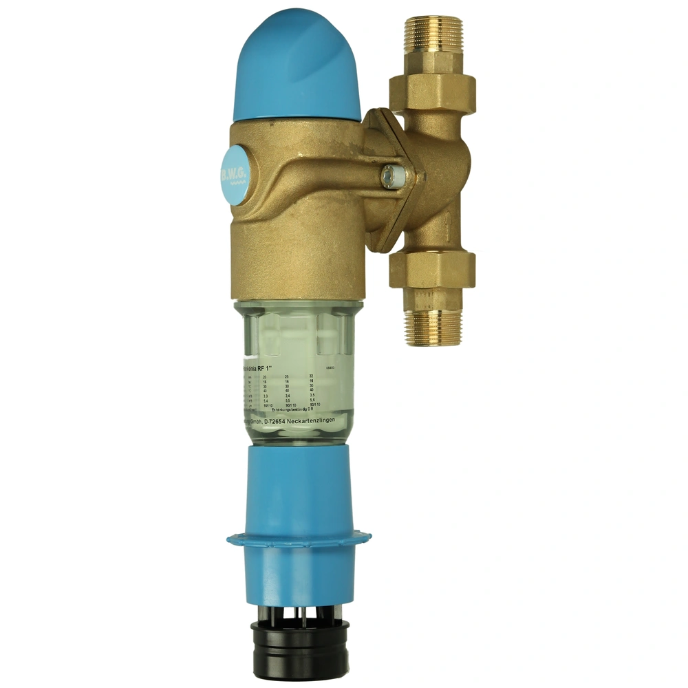 Rückspülbarer Wasserfilter für die Hausinstallation. Schmutzpartikel wie Sand, Rost, Späne etc. werden aus dem Wasser gefiltert, um Funktionsstörungen und Korrosionsschäden in der Installation zu vermeiden. Der Rückspülfilter kann waagerecht und senkrecht eingebaut werden. Der Termin der nächsten Rückspülung kann über einen Datumsring eingestellt werden.