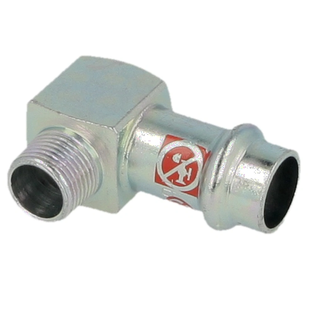 Pressfitting aus C-Stahl für Heizungs-, Druckluft-, Klima- und Solaranlagen. Zur Verpressung durch Pressbacken mit Kontur V. Unverpresst undicht durch speziellen O-Ring. Korrosionsbeständig durch galvanische Verzinkung...
