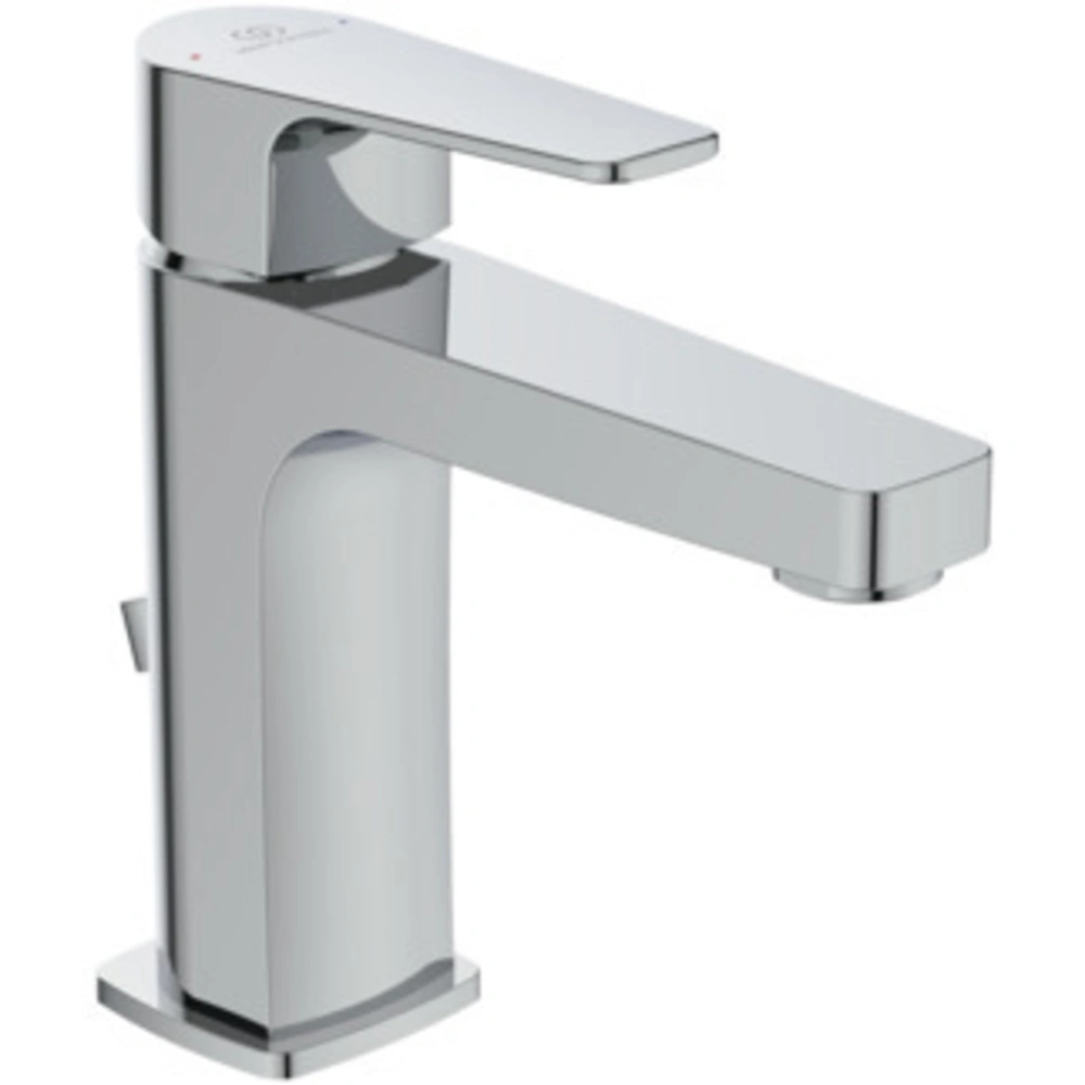 Einhebel-Waschtischarmatur mit Zugstangenablaufgarnitur und integrierter Heißwassertemperaturbegrenzung. Der starre Auslauf ist mit einem Luftsprudler und einem druckunabhängigen Mengenregler ausgestattet.