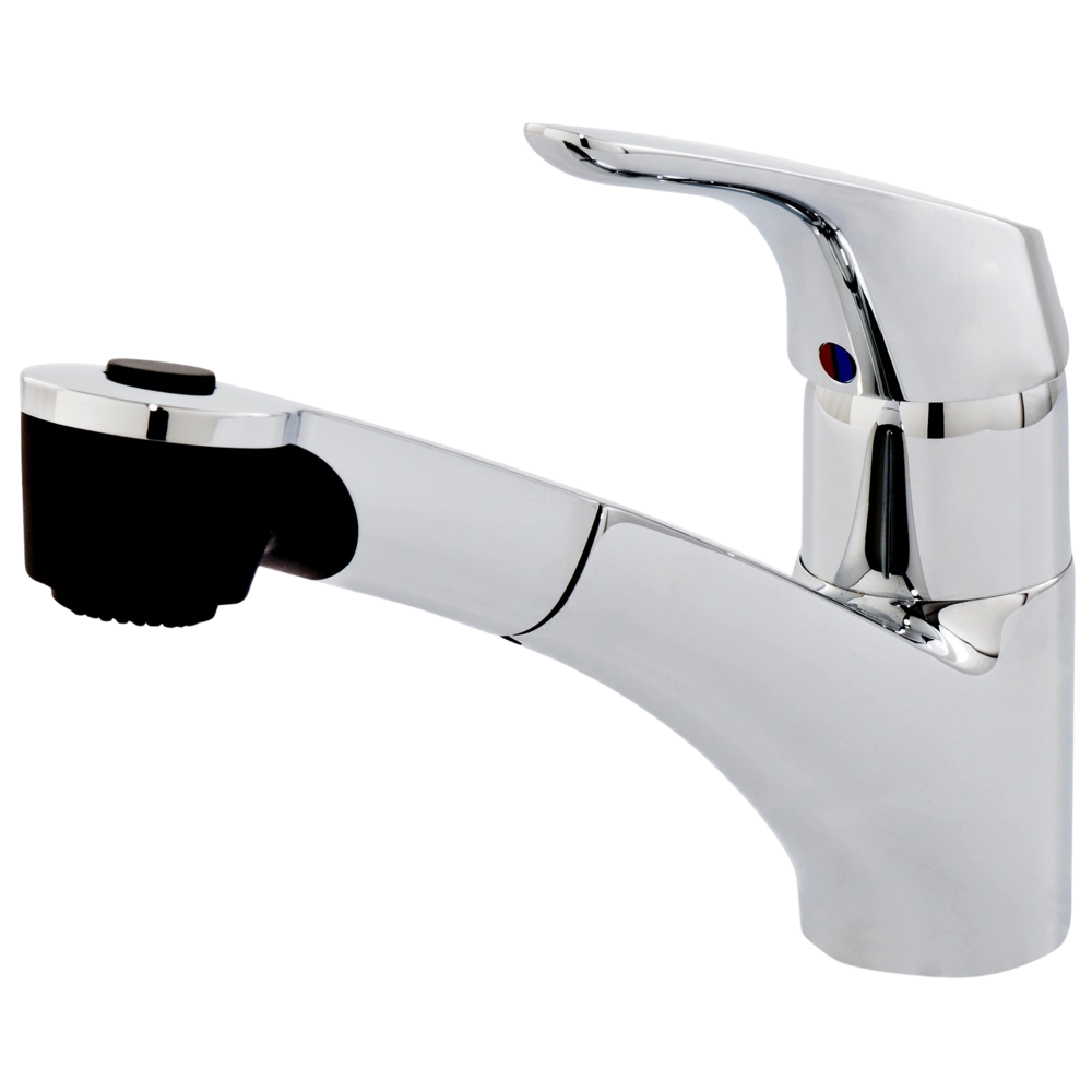 Die Küchenarmatur besitzt einen schwenkbaren Gussauslauf inkl. herausziehbarer Brause. Ausgestattet ist die Armatur mit einem Bedienungshebel aus Metall, einer Ø 47 mm CLICK-Kartusche mit keramischen Dichtscheiben und einem Rückflussverhinderer. Außerdem verfügt die Kartusche über ein integriertes Fettreservoir (lebensmittelverträglich) sowie Temperaturbegrenzer und ECO-Funktion.