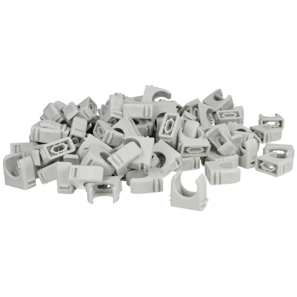 Clip-Rohrschellen für die Wand- und Deckenbefestigung von metrischen Rohren nach EN 60 423. Sie sind aneinanderreihbar und haben ein Langloch für die Befestigung mit Schraub- oder Schlagdübel.