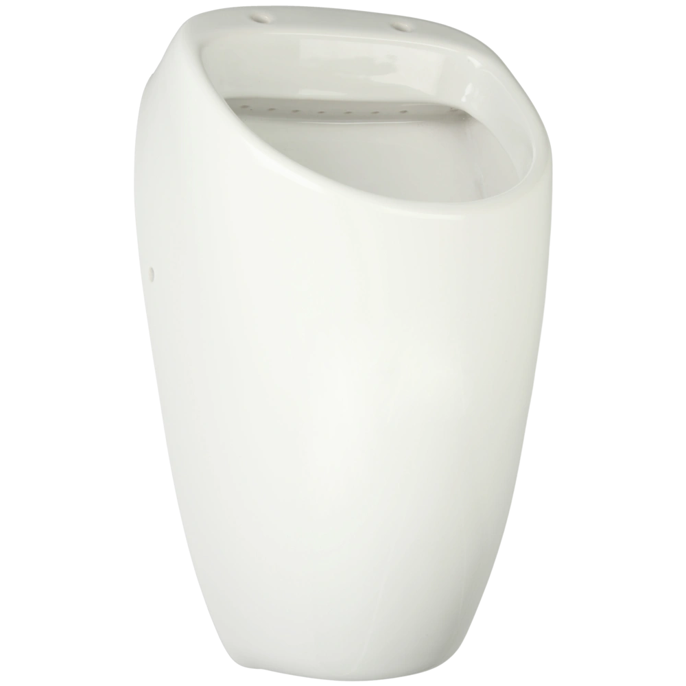 Absaugurinal mit Spülrand. Das Urinal aus Kristallporzellan hat hinten einen verdeckten Zu- und Ablauf und passt zu allen handelsüblichen Spülsystemen.