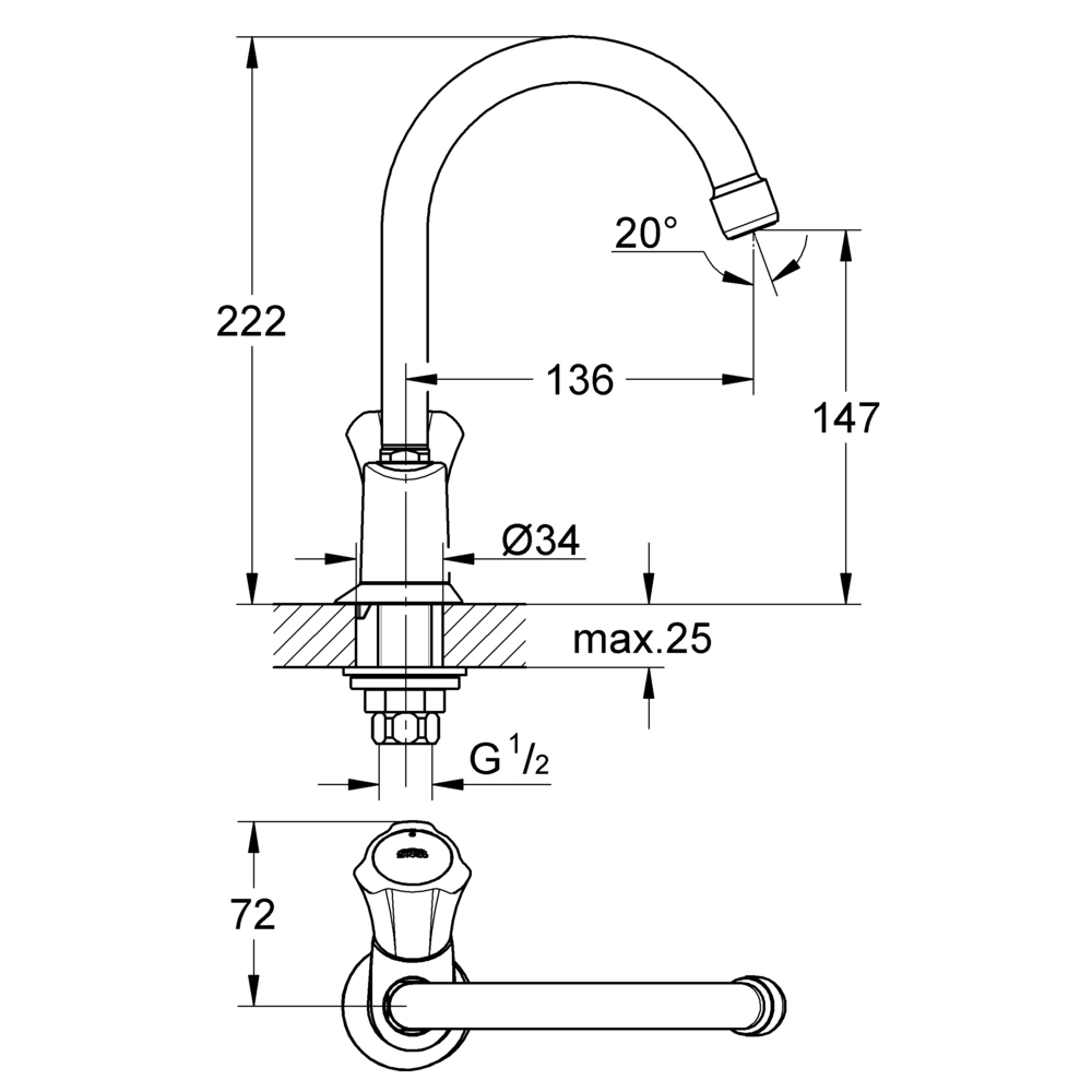 | Armaturenhöhe [mm]: | 222 |