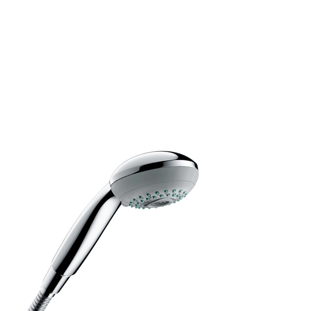 Handbrause mit den 3 verschiedenen Strahlarten Normalstrahl, Massagestrahl und Monostrahl. Mit dem QuickClean Antikalksystem ausgestattet und für Durchlauferhitzer geeignet.