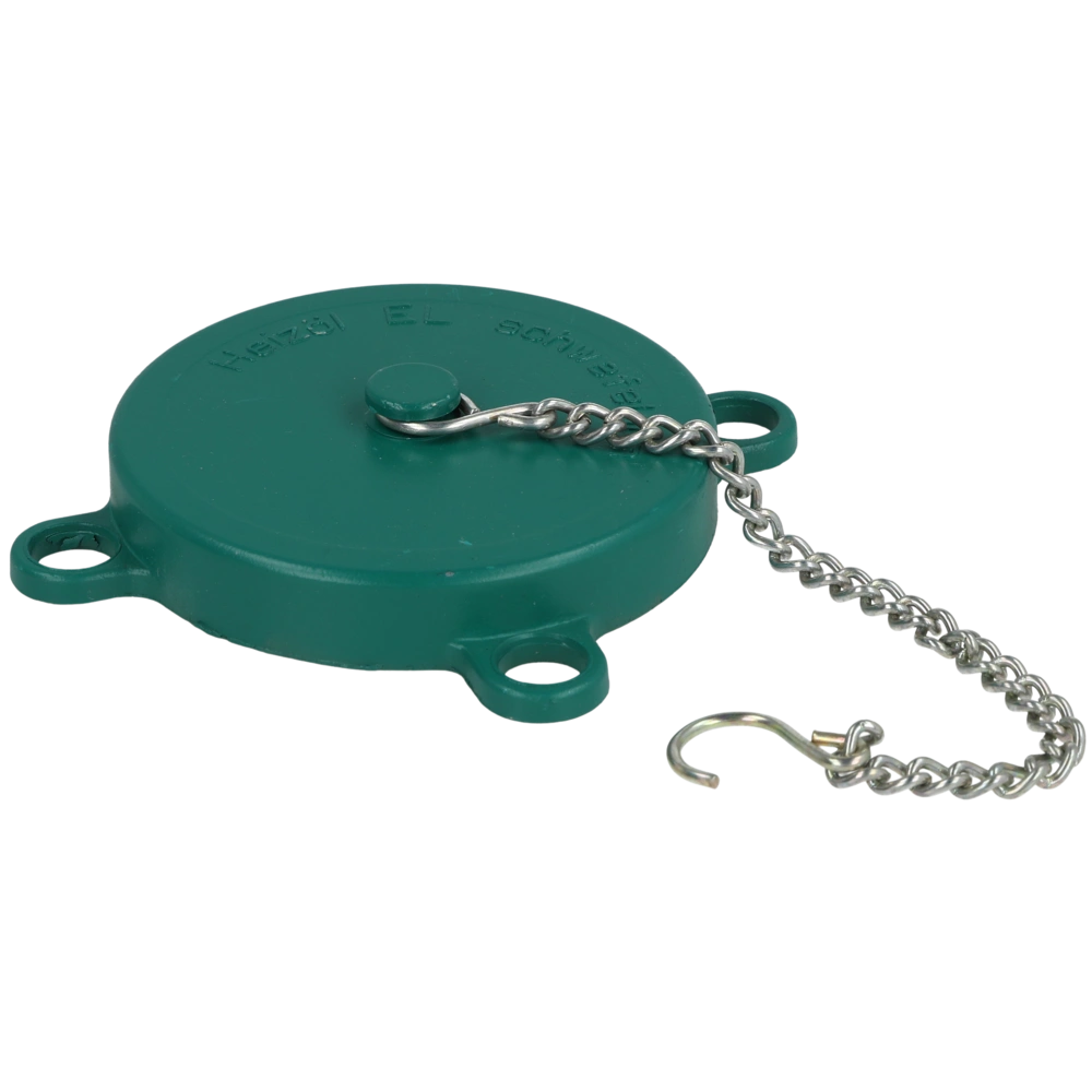 Deckel für verschließbaren Füllrohrverschluss mit Kette und Flachdichtung. Durch den Lochkranz ist die Kappe an jeder Position mit einem Vorhängeschloss verschließbar. Vorteilhaft bei überschwemmungsgefährdeten Gebieten...
