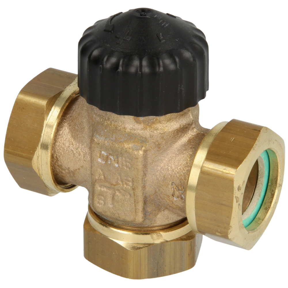 Flachdichtendes Dreiwege-Regelventil zum Mischen von Heiz- und Kühlwasser in Anlagen. Mit einem 3-Punkt Stellantrieb eignet es sich ideal zur Regelung der Vorlauftemperatur. Der Einsatz von Heimeier Thermostatköpfen ermöglicht eine energiesparende Proportionalregelung ohne zusätzliche Stromversorgung. Das Ventil ist flexibel einsetzbar, abhängig von der Einbausituation und dem verwendeten Antrieb. Das Gehäuse aus robustem Rotguss ist korrosionsbeständig, und die doppelte O-Ring-Abdichtung sorgt für Zuverlässigkeit und Langlebigkeit. Ein Wechsel des äußeren O-Rings ist unter Druck möglich, wodurch Wartungsarbeiten schneller und einfacher werden.