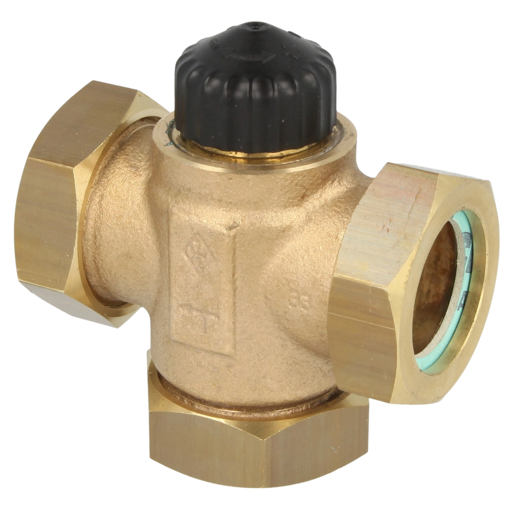 Flachdichtendes Dreiwege-Regelventil zum Mischen von Heiz- und Kühlwasser in Anlagen. Mit einem 3-Punkt Stellantrieb eignet es sich ideal zur Regelung der Vorlauftemperatur. Der Einsatz von Heimeier Thermostatköpfen ermöglicht eine energiesparende Proportionalregelung ohne zusätzliche Stromversorgung. Das Ventil ist flexibel einsetzbar, abhängig von der Einbausituation und dem verwendeten Antrieb. Das Gehäuse aus robustem Rotguss ist korrosionsbeständig, und die doppelte O-Ring-Abdichtung sorgt für Zuverlässigkeit und Langlebigkeit. Ein Wechsel des äußeren O-Rings ist unter Druck möglich, wodurch Wartungsarbeiten schneller und einfacher werden.