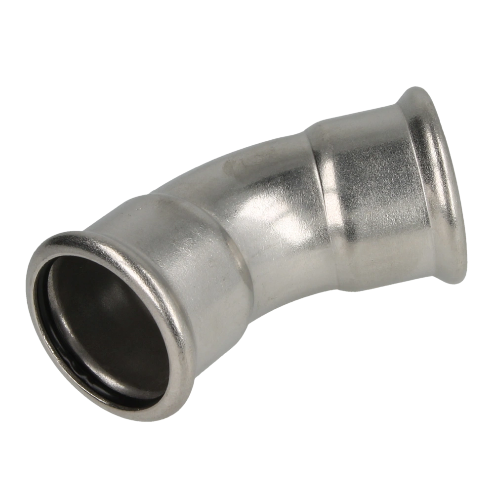 Edelstahlpressfitting für die Trinkwasserinstallation sowie Heiz-, Kühl-, und Solaranlagen zur Verpressung durch Pressbacken mit Kontur M. Der Einsatz in ölfreien und trockenen Druckluftanlagen ist ebenfalls möglich...