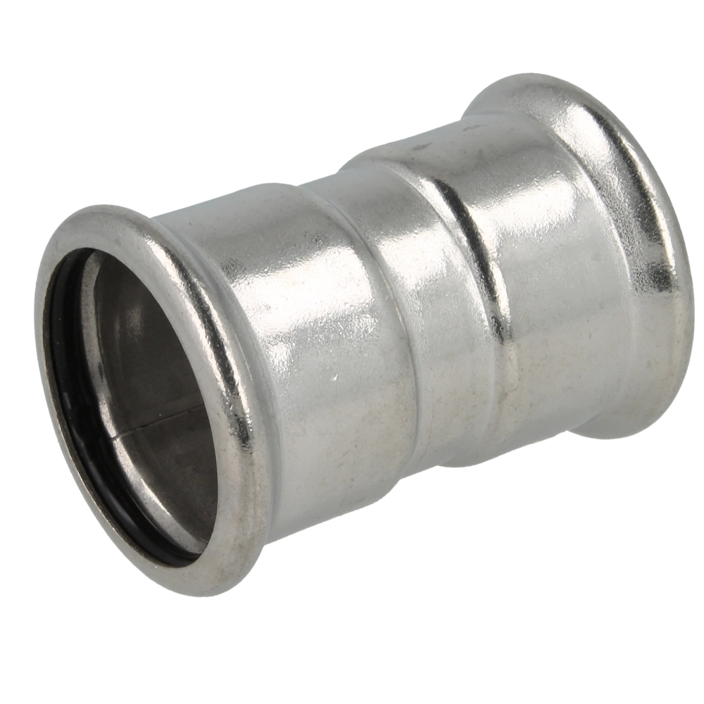 Edelstahlpressfitting für die Trinkwasserinstallation sowie Heiz-, Kühl-, und Solaranlagen zur Verpressung durch Pressbacken mit Kontur M. Der Einsatz in ölfreien und trockenen Druckluftanlagen ist ebenfalls möglich. Im Auslieferungszustand sind die Fittinge mit einem wärmestabilisierenden und heißwasserbeständigen O-Ring aus EPDM bestückt.