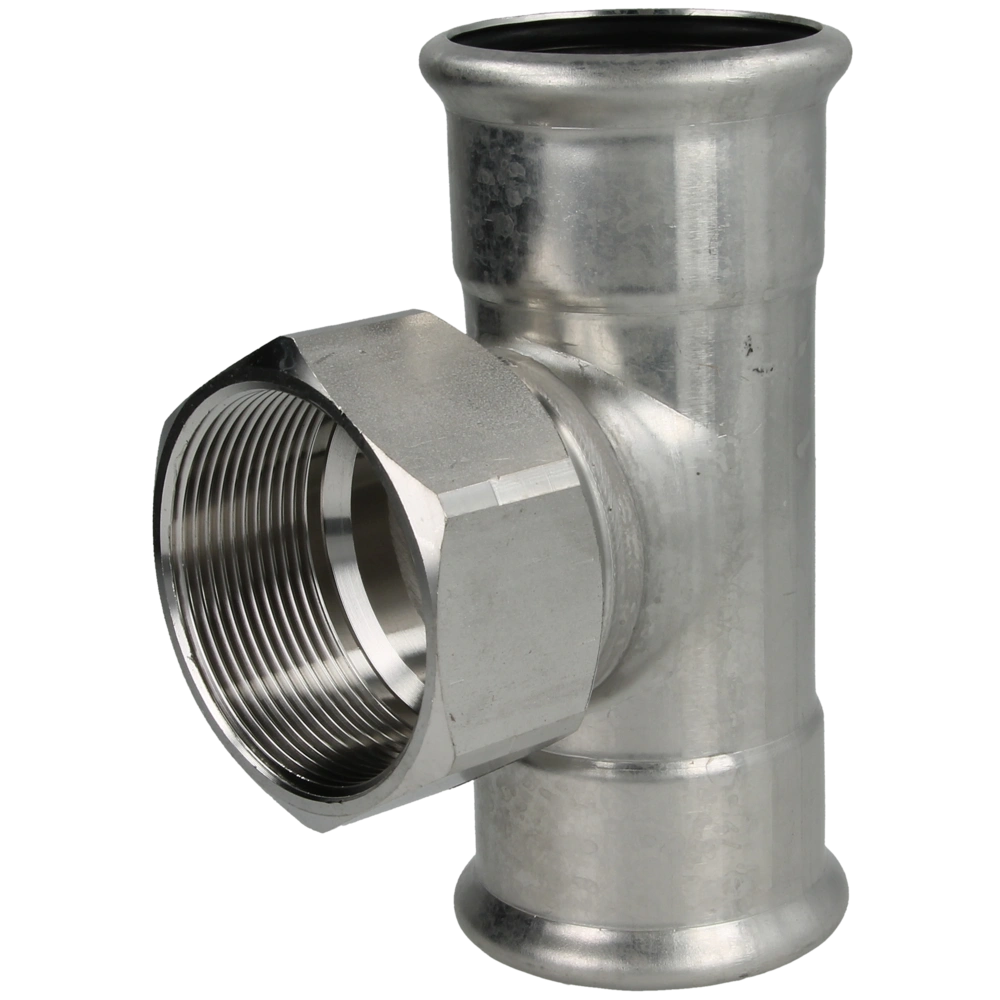 Edelstahlpressfitting für die Trinkwasserinstallation sowie Heiz-, Kühl-, und Solaranlagen zur Verpressung durch Pressbacken mit Kontur M. Der Einsatz in ölfreien und trockenen Druckluftanlagen ist ebenfalls möglich...