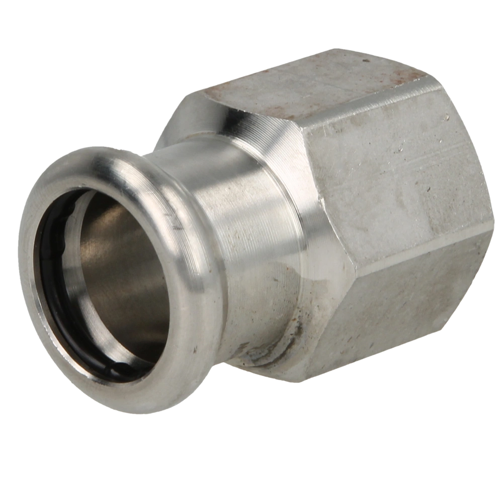 Edelstahlpressfitting für die Trinkwasserinstallation sowie Heiz-, Kühl-, und Solaranlagen zur Verpressung durch Pressbacken mit Kontur M. Der Einsatz in ölfreien und trockenen Druckluftanlagen ist ebenfalls möglich...