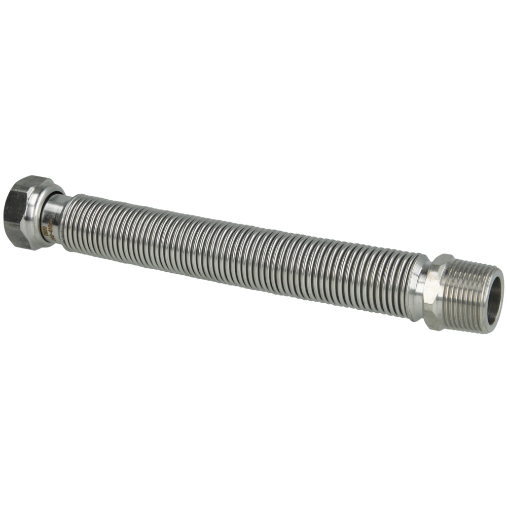 Alle ProduktinformationenHochwertige, ausziehbares Edelstahlwellrohre zum flexiblen Anschluss von Wärmepumpen, Speichern, Solarthermieanlagen, Kesseln und Komponenten im Haus und in Industrieanlagen. Das Rohr ist auf die doppelte Grundlänge streckbar und in alle Richtungen biegbar. Es wird mit einem konischen Außengewinde und Überwurfmutter geliefert.