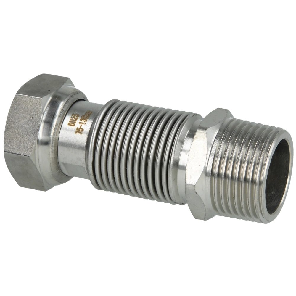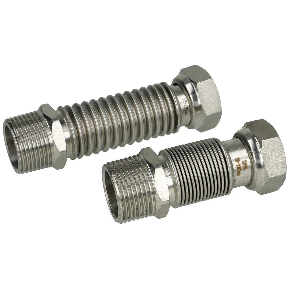 Alle ProduktinformationenHochwertige, ausziehbares Edelstahlwellrohre zum flexiblen Anschluss von Wärmepumpen, Speichern, Solarthermieanlagen, Kesseln und Komponenten im Haus und in Industrieanlagen. Das Rohr ist auf die doppelte Grundlänge streckbar und in alle Richtungen biegbar. Es wird mit einem konischen Außengewinde und Überwurfmutter geliefert.