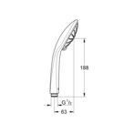 Handbrause mit Anti-Kalk Noppen und drei Strahlarten. Die Oberfläche ist unempfindlich gegen Verkratzen und lässt sich leicht reinigen.