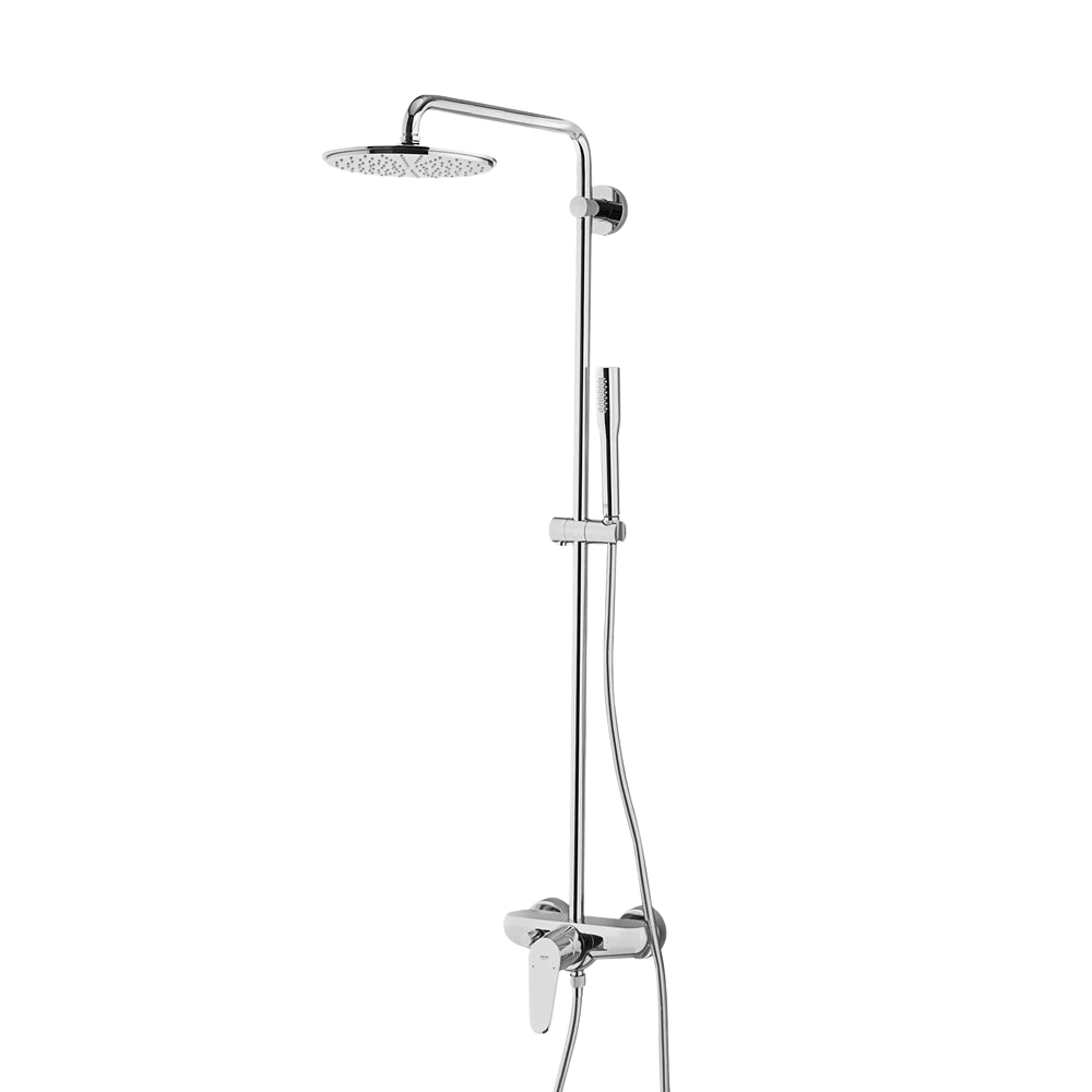 Das GROHE Euphoria Eurodisc C Duschsystem XXL 210 mit Einhandmischer für die Wandmontage (mit innenliegender separater Wasserführung) besteht aus einem horizontal schwenkbarem 450 mm Duscharm, der Aufputz-Einhand-Brausebatterie mit Umstellung und GROHE SilkMove® 46 mm Keramikkartusche, der GROHE StarLight® Chromoberfläche und dem SpeedClean Antikalk-System.