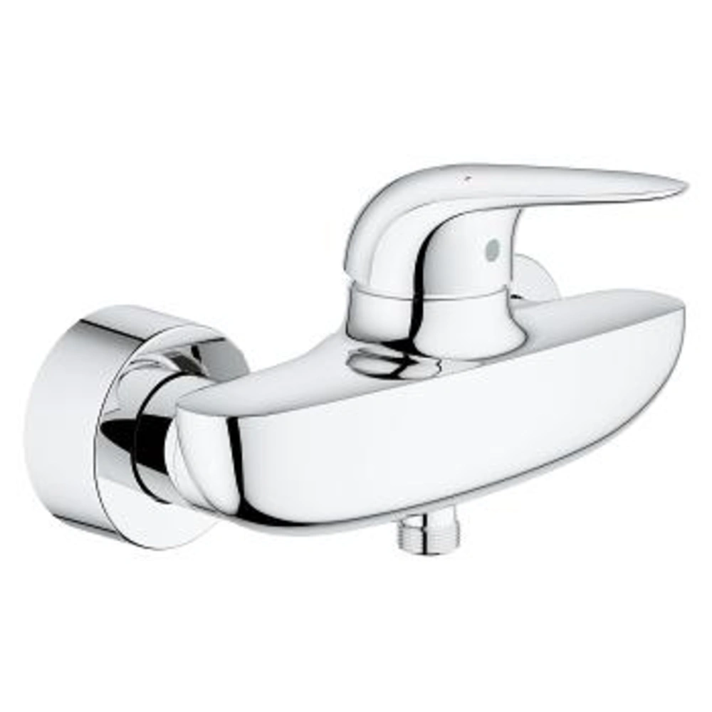Einhand-Brausebatterie mit geschlossenem Metall-Hebelgriff für die Wandmontage. Die S-Anschlüsse sind verdeckt. Die Armatur ist mit einer 35 mm Keramikkartusche, einem Temperaturbegrenzer und einer...