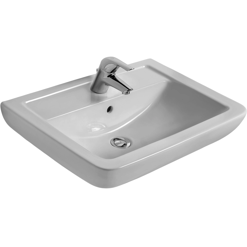 Eurovit Plus Waschtisch aus Kristallporzellan mit Wasserleiste, mittigem Überlaufloch und mittig durchgestochenem Hahnloch.