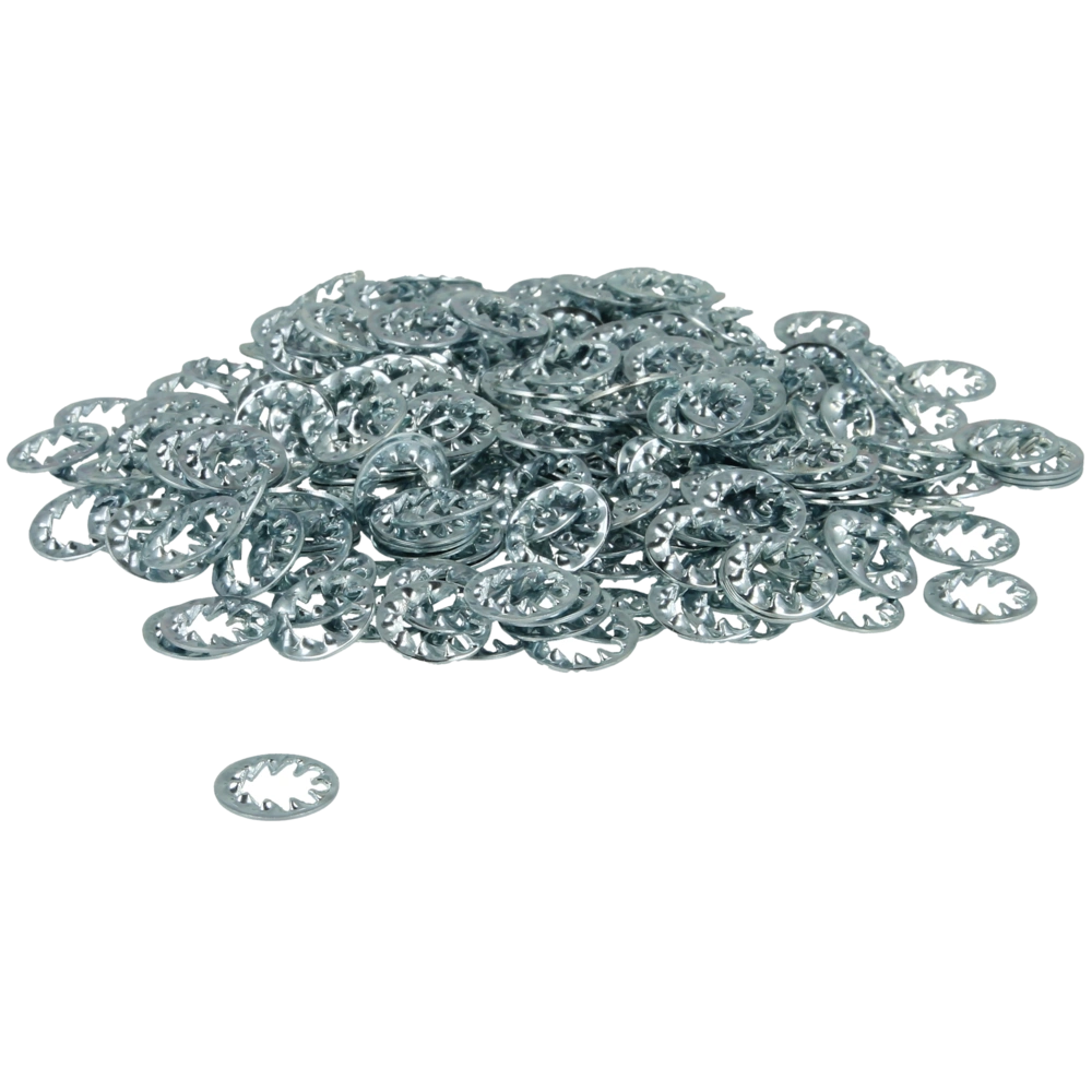 Galvanisch verzinkte Fächerscheiben.