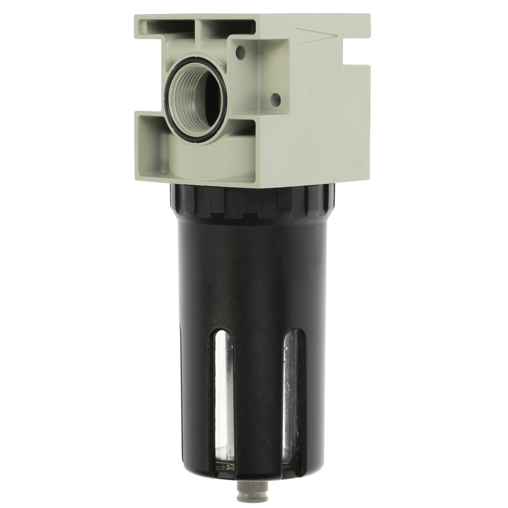 Alle ProduktinformationenRobuste Wartungseinheit mit Metallgehäuse. Kompakte Bauweise zur Montage an Maschinen oder Wänden. Als Reinigungsstufe vor dem Druckminderer mit halbautomatischer Entwässerung. Maximale Abscheidung von Schmutzpartikeln und Kondensat durch zentrifugale Beschleunigung der Druckluft. Zweistufig mechanisch wirkender Filter mit 20 µm.