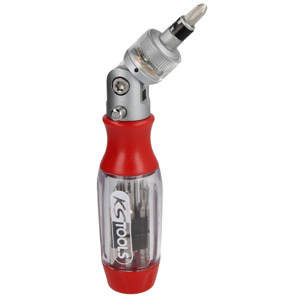 Der Flexkopf Schraubendreher verfügt über eine Ratschenfunktion mit 3-stufiger Einstellmöglichkeit. Zusätzlich kann der Vorsatz geschwenkt werden, um auch an unzugänglichen Stellen arbeiten zu können...