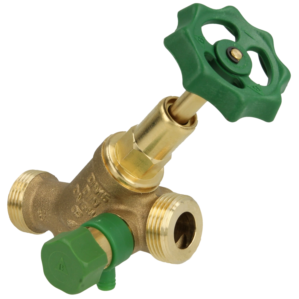 Das Ventil besitzt zusätzlich einen Entleerungshahn.
