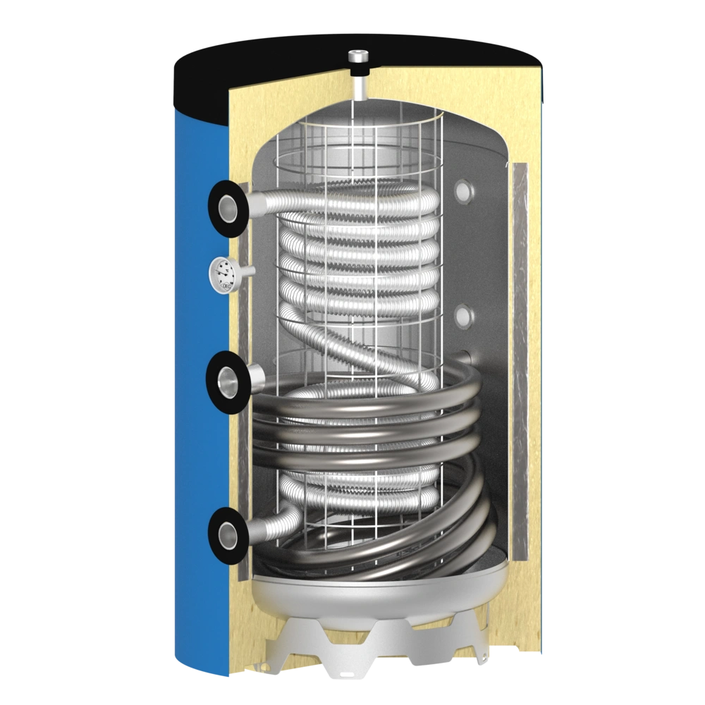 Deze boiler is een hygiëne boiler. Het tapwater wordt volgens het principe van een doorstroomverwarmer verwarmd, dat gebeurt in de RVS buis. Het CV water zit in de boiler, om de RVS spiraal heen. Het CV water kan door de extra warmtewisselaar met behulp van solar verwarmd worden.