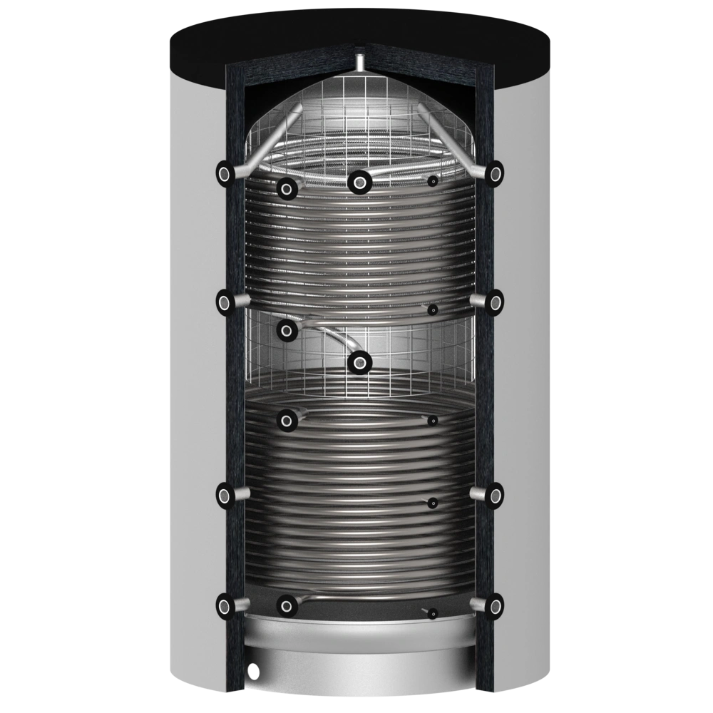Zowel een buffervat als een verswaterboiler kunnen aanvullend worden uitgerust met 1 of 2 buiswarmtewisselaars voor een of meerdere warmtebronnen.